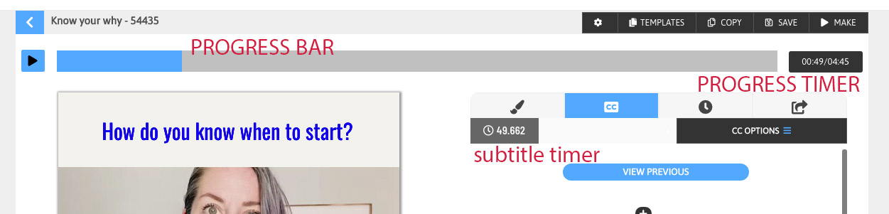 with each new screen of CC text, the time block bar starts all over again, rather than keeping track of the whole video.